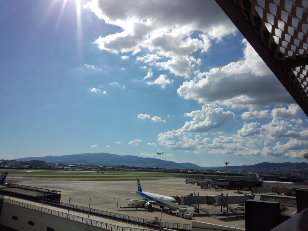 伊丹空港飛び立つ飛行機